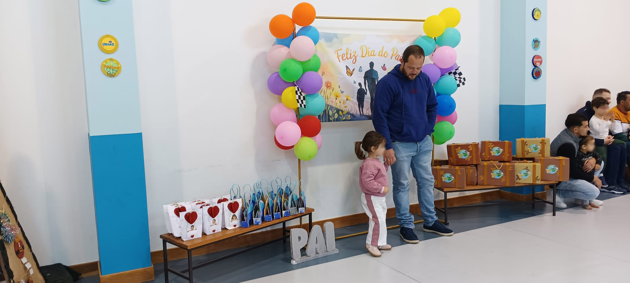 Para terminar cada pai foi convidado aproximar-se para receber a sua prenda executada pelo filho, com ajuda da sua educadora e oferecida em mãos pelo filho terminando assim tudo com muito civismo.