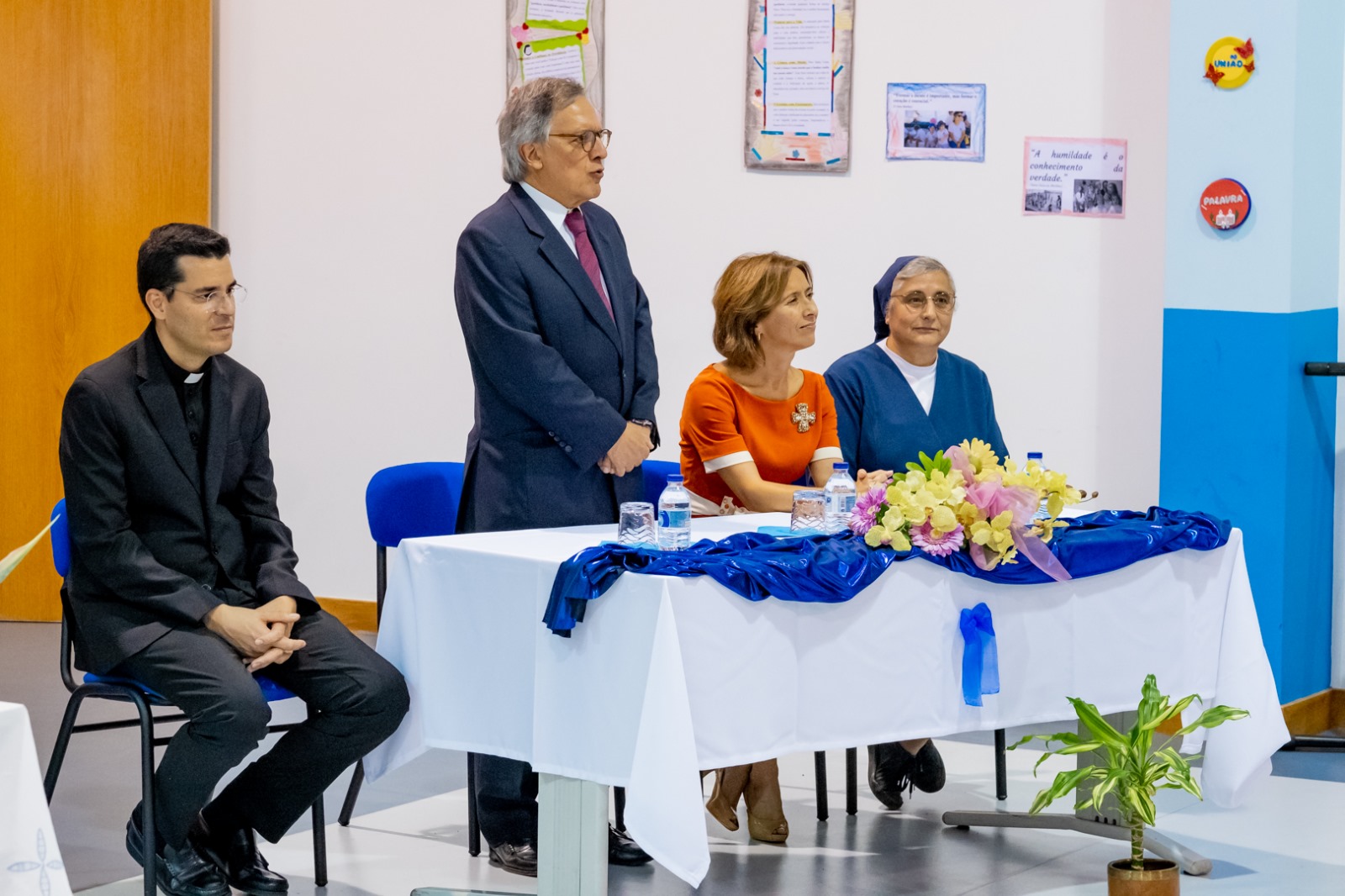 Estiveram presentes nesta comemoração; O presidente da Instituição, ( Dr. Ricardo Rui Vieira); a Visitadora das Filhas da Caridade, (Maria de Fátima Miranda); a representante do Governo, (Drª Paula Margarido); o representante do Sr. Bispo, (Cónego Marcos); A Drª Maria do Céu Carreira, Presidente das IPSS da Madeira, A presidente da CMF, Drª Cristina Pedra; e 3 representantes da DRE ( Dr. Marco, Drª Nadine Mota e Drª ….); Dr. Rodolfo gerente do Montepio, o Presidente da JFM Dr. Agostinho e a Drª Idalina anterior presidente deste pelouro, O atual Presidente do Banco Alimentar acompanhado da Drª Petra e o Sr. Daniel ; A presidente dos "Lieons", a Drª Isabel do Conselho fiscal, A Drª Marília Presidente dos vicentinos acompanhada pela Clara Gama e outras pessoas que nos acompanharam neste momento, para além de Todas as Colaboradoras docentes e não Docentes da Instituição, várias pessoas amigas, alguns encarregados de Educação e algumas crianças presentes que abriram este momento de Ação de Graças com o Hino da Fundação, que resume no fundo a nossa MISSÃO.